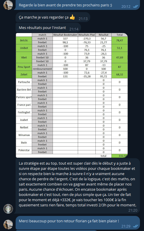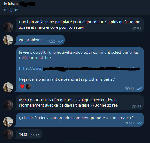 Je vous accompagnerai personnellement pour la prise de vos premiers paris pour être sûr que vous avez bien compris la stratégie.